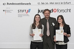Die Preisträger werden zudem zur Göttinger Tagung eingeladen und erhalten für 1 Jahr ein freies Abonnement für das Neuroforum. Die Preisträgerinnen 2012 sind Charlotte Duesmann und Laura Pasitka, beide 18 Jahre alt. Sie besuchen beide das Wilhelm-Ostwald-Gymnasium in Leipzig. Thema ihres Projektes ist die „Charakterisierung von Oligodendrozyten-Progenitoren im Zentralen Nervensystem adulter Schafe“. Der Schlaganfall ist die dritthäufigste Todesursache in Deutschland. Bislang gibt es nur eine einzige Therapiemöglichkeit, die jedoch nur bis maximal viereinhalb Stunden nach einem Schlaganfall angewandt werden kann. Die Tatsache, dass dringend weitere Therapiemöglichkeiten benötigt werden, inspirierte Laura Pasitka und Charlotte Duesmann zu ihrem Projekt. In der Arbeitsgruppe Neuroreparatur im Fraunhofer-Institut für Zelltherapie und Immunologie führten die beiden 18-Jährigen Grundlagenforschung am Schafsgehirn durch. Schwerpunkt der Untersuchungen war unter anderem eine mögliche Regeneration des betroffenen Gewebes im Zentralen Nervensystem. Der Preis wurde beim 47. Bundeswettbewerb vom 17. bis 20. Mai 2012 in Erfurt von NWG-Mitglied und Jugend- forscht-Juror Hans-Joachim Pflüger, Berlin, überreicht.